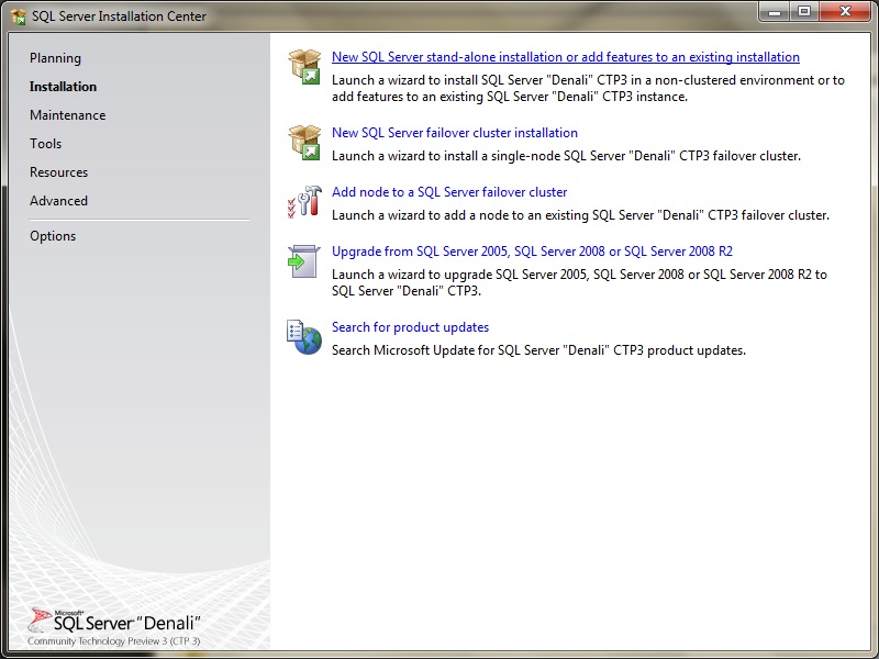 Am all excited to let you know that I’ve downloaded SQL Denali CTP3 today and I’m installing it on my test laptop. I would like to share it with the community:)
