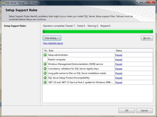 Now as you can see it has done a detailed rule check. You can see it also checked for SQL Server 2008