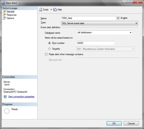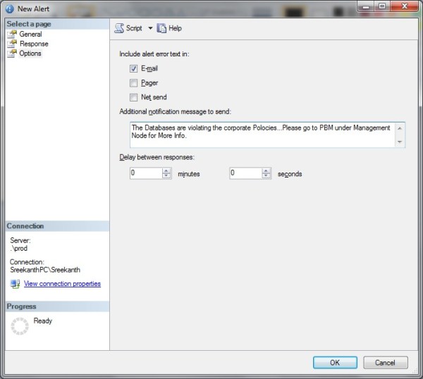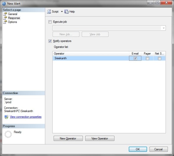 DO NOT JUST CLICK OK now….Instead go to RESPONSE tab and choose an operator whom you want to notify for this Alert based on this Error Number as shown below.