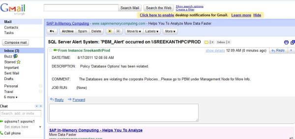 Now click OK:) and let’s try to evaluate our policy manually as we did earlier(Go to your policy node under Management in your Object Explorer and RC and select Evaluate) for testing our policy initially and let us see what we’ve in our Inbox.
