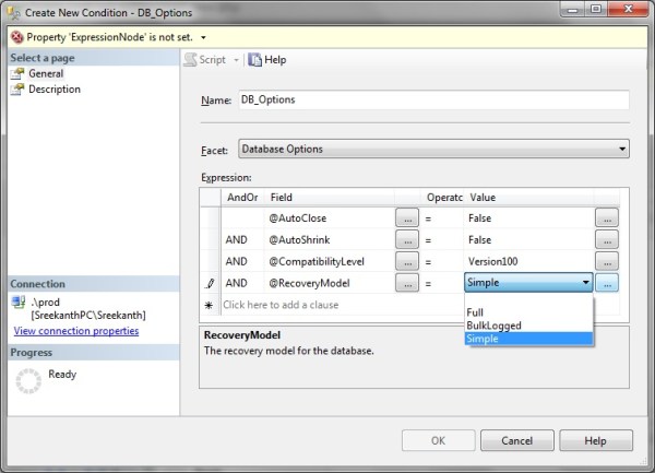 PBM(Policy-Based Management) – One of the most fancy terms which we(the fantastic SQL Server DBA’s) are listening starting SQL Server 2008. In this Blog post I’m not going to explain in detail what PBM is how exactly it works, instead I’m going to show how to create a Policy for checking Auto-Close, Auto-Shrink,Compatibility Level and Recovery Model of all the databases on a regular basis and how to setup email alerts if any of our databases are violating our policy.