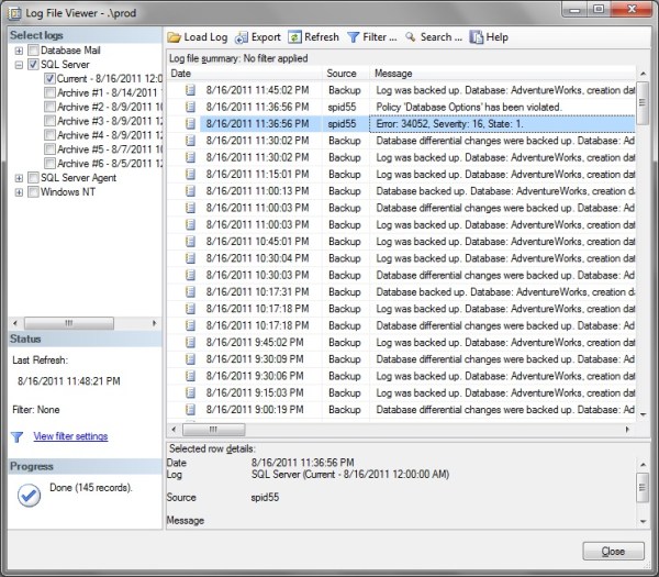 To double check, Let’s see our SQL Error Log and Event Viewer what has been logged…