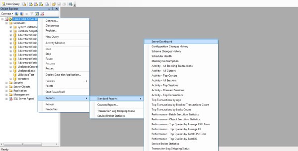 In this Blog post, i would like to show some interesting In Built Reports which you(we) as a DBA might(Should) be interested! Before going any further, please see the below Screenshot for what i’m actually referring to if you are new to SQL Server.