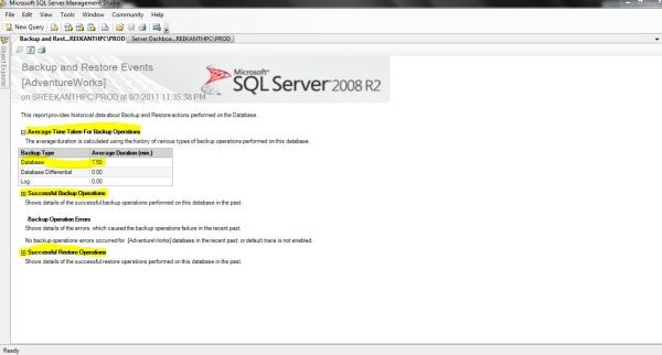 It gives me the Avg time it is taking for backup Operations! You can use this as a Benchmark for your backup duration (well, there is much better way to pull that info from MSDB, I’m Just talking about basic Benchmarking here ;)) If you expand Successful Backup/Restore Operations, it tells you what was backed up/restored, the location of files, when it was performed and who(the Login) performed the operation…Well one more way to track these operations!!