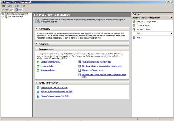 Anyways, let’s see where can we see the cluster Group in Failover Cluster Manager in Win Server 2008. Assuming you’ve already Installed FCS(Failover Cluster Service), once you navigate to your Administrative tools and open Failover Cluster Manager(GUI to Manage your Failover Cluster), you’ll see something very similar to the below Screeshot.