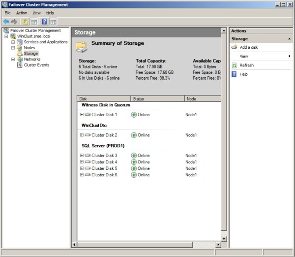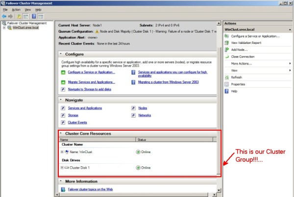 Typically we expand our Cluster and navigate to our Services and Applications, Nodes, Networks to manage our SQL Servers! But you are not able to see the actual Cluster Group anywhere as shown in the below Screenshot!