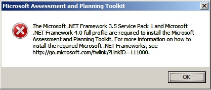 I’ve chosen “Mirror_Stand” machine in My Lab Domain to Install MAP. I copied over executable to this box as the 1st step. Right click on the “Microsoft_Assessment_and_Planning_Toolkit_Setup.exe” and choose Run as Admin and you should be seeing the following Screen. (Make sure to Install all the Prereq’s. If not, you’ll be welcomed with an ugly X message as shown below!)