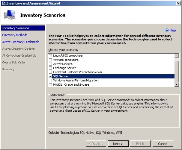 Hello Folks! In this Blog Post let’s see how to make use of MAP tool for discovering all of your SQL Servers in your Environment. MAP is one of the wonderful tools(free) provided by Microsoft, which basically scans all over your Network and present you with a wonderful report on all of your Servers. They could be Windows Servers, Linux Servers, SQL Servers, Oracle, MySQL. Many companies use this fabulous tool for planning future road maps(Could Be Server Upgrades, Desktop Upgrades, MS Office Suite upgrade and what not), consolidations, upgrades, Licensing etc. In My Organization, we are planning to move on to SQL 2012 very soon and we need a report which basically gives us a clear and simple picture of our current SQL Server Environment and I was assigned to achieve this goal 🙂