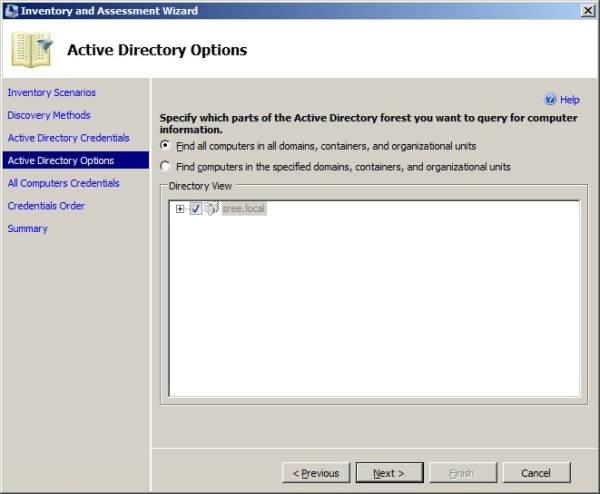 Step 5: Provide domain Credentials and select which parts of your AD Forest to scan for as shown below.