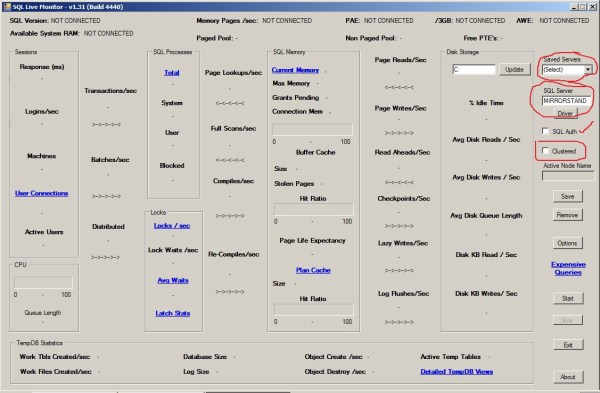 As you can see initially it’s not connected and It’s asking for SQL Instance Name, whether it’s a cluster or Standalone, If it’s clustered…what’s the current active node for your Instance….etc. In my case, It’s a standalone box. Once I selected my Driver(In my case it’s 2008 Native Client) and provided with Instance name and clicked Start…It is providing me all the cool info as you can see below…