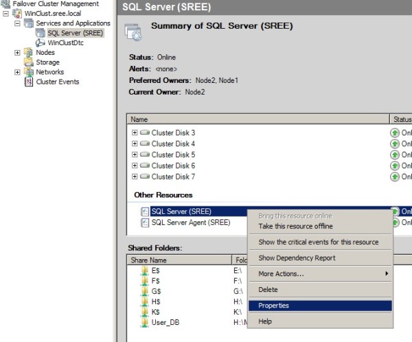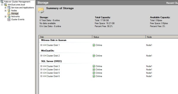 Below are the screenshots of my current SQL Server Failover Cluster which I’m going to add a new Drive.