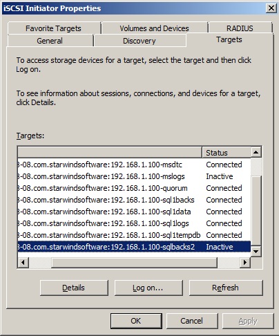 Went to ISCSI Initiator and all I have to do is Initiate this new drive as shown below. you can see our new drive as Inactive as of now in the below screenshot.
