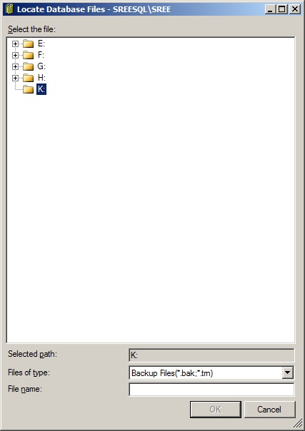 How to verify that the Drive has not yet added successfully 100% to our SQL Server Instance from SSMS? It’s very simple, Just try to access this Drive from your SSMS. In this example I’m just trying to take a backup of one of my Databases and looking for $K to place the backup, which I can’t see(But I can see it from My Computer) unless I add the dependency Manually as you can see below.