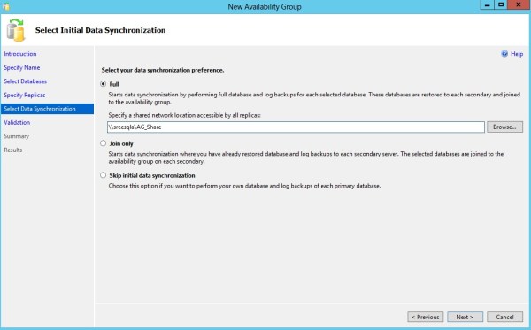 Now..It’s time to select how you want to initiate Data Synchronization. I’ll provide my Share and let wizard to take care of it as needed, since my database are tiny!