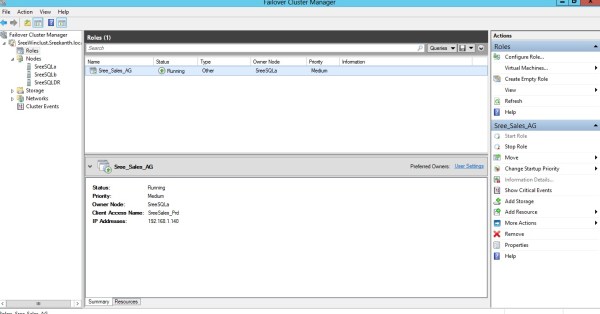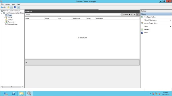 Here is the Snapshot of my Cluster manager before I enable AlwaysOn on SQL Instances…(Just keep this in mind that there are no Roles for now)