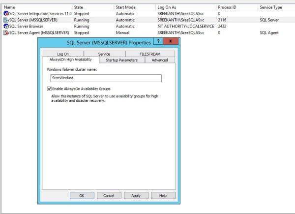 3.We have to enable “AlwaysOn Avaiability” option on all the Instances in SQL Server configuration Manager(Service Restart is required).