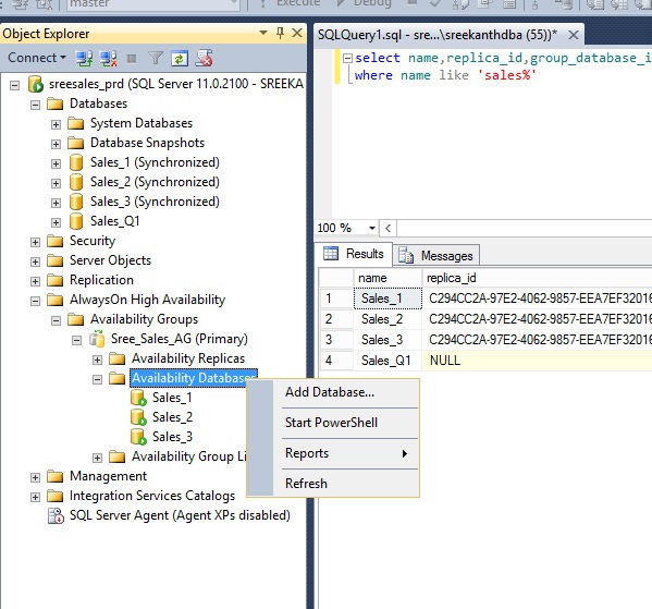 You can see Sales_q1 added to the AG successfully. Perfect! Hope this helps.
