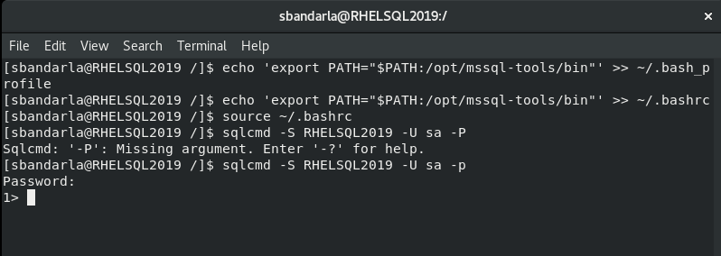 Don’t forget to add sqlcmd and bcp tools to path to avoid providing literal path every time we need to access sqlcmd. I hope microsoft will take care of this as part of post installation in future releases instead of manual intervention. ( Symbolic links may be??)