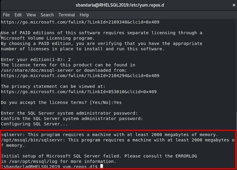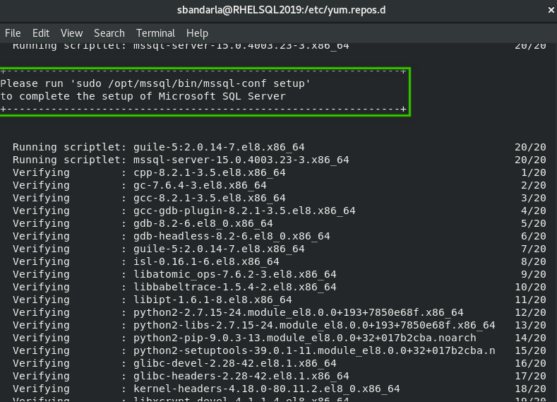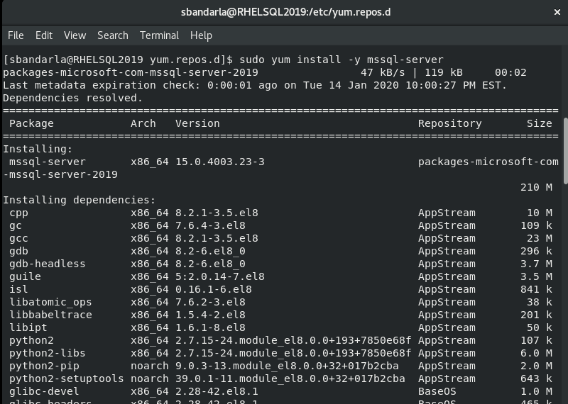 Wish you all a very happy new year folks! Been a while since I posted something, so here I am 🙂 I would like to begin my blogging in year 2020 with Linux. Long ago, I wrote an article on how to setup a VM with CentOS and install SQL 2017 on top of it. I am not going to walk through those steps again., Instead let’s see if the setup experience is any different from SQL 2017 on RHEL.