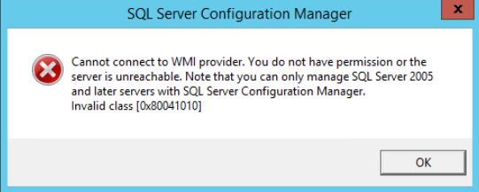 cannot connect to wmi provider. you do not have permission or the server is unreachable. note that you can only manage sql server 2005 and later servers with sql server configuration manager.invalid class [0x80041010]