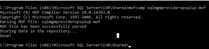 In my case since it’s SQL 2016, the path for “sqlmgmproviderxpsp2up.mof ” file is