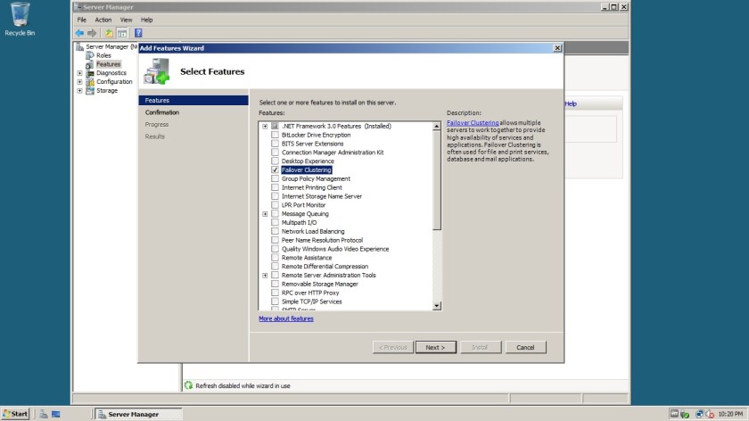 Next-> and Install. Go ahead and do the same on Node2 as well. This might take a while depending on your server capabilities and it may require server reboot. You should be seeing something similar to