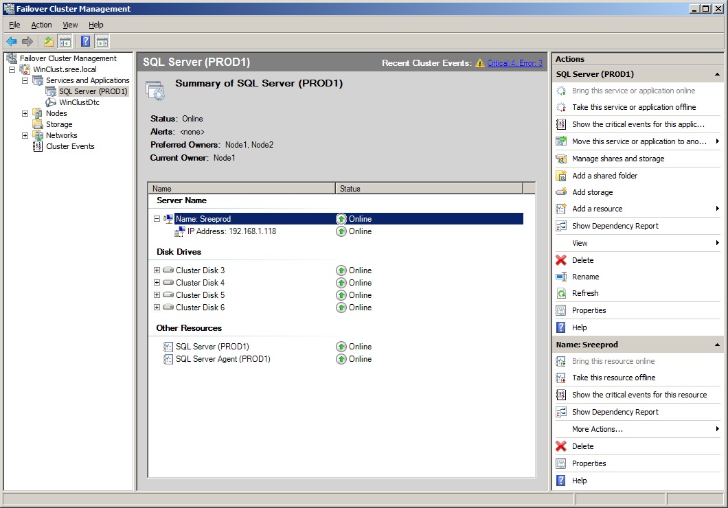 Note: I’ve manually added Node2 to our Preferred owners List(Optional). Once, you add Node2 to our cluster, you will be seeing Node2 and Node1 as possible owners for your SQL-Sreeprod.