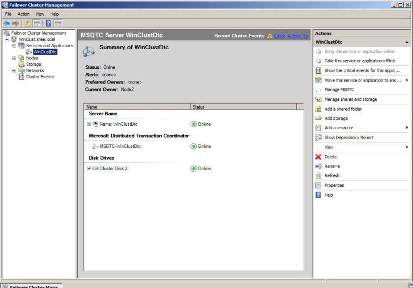 You can add preferred Owners by just right clicking on winclustdtc in your left pane and going to properties. FYI I’ve chosen Node1 and Node2 in the same order as preferred owners.