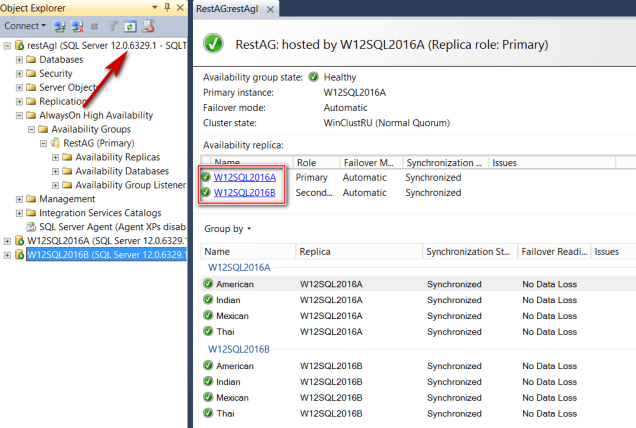 As you can see, W12SQL2016A/B are my two replicas(Nodes) which are running Win2012R2+SQL 2014.