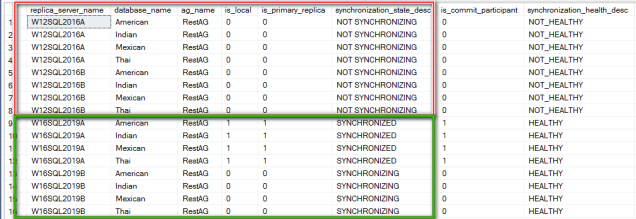 Awesome, At this point, W16SQL2019A took over the primary role all your databases participating in your AG have been upgraded to SQL 2019 and the other SQL 2019(W16SQL2019B in my case) Instance will be in sync from now on, but the two SQL 2014 Instances will be in unhealthy state, In fact those databases become inaccessible at this time, since Logs can’t be shipped from higher(2019) to lower(2014) version. Duh!!!!!….