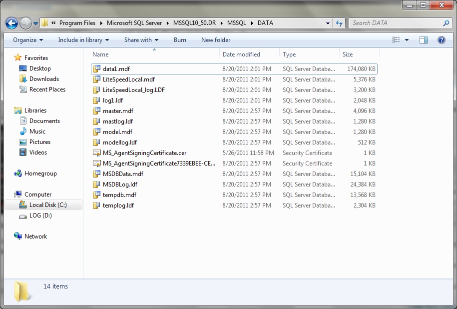 These are not the actual system database files….I repeat, these are Just templates which SQL Server will create behind the scenes during Installation Process. My actual System Databases are located in DATA folder as shown below