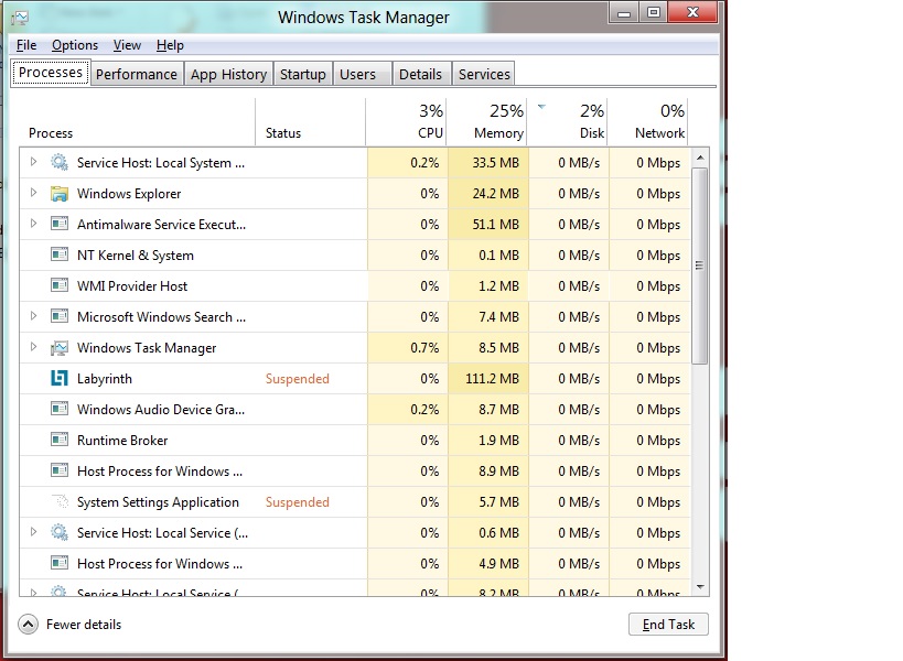 Personally, am Very much impressed with brand new Task Manager(It has a blend of multiple Sysinternal Tools all at a single place!!) Let’s take detailed look at Windows Task Manager now. See the various Screenshots of Tabs available within Windows8 TaskManager below….