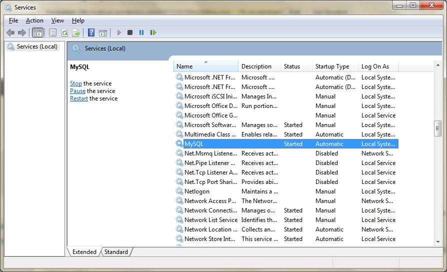 Now, as you can see in the below Screenshot, I’ve mysql as a windows Service.