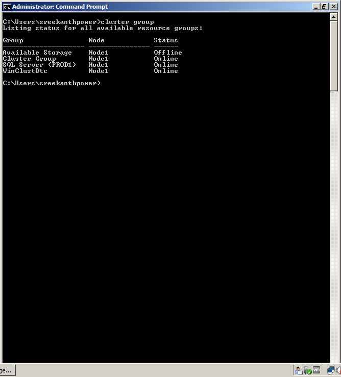 If you worked a long time on Windows Server 2003 Clusters, you will definitely know what a cluster group is. In 2003, we used to have a concept called “Groups”. One of the groups which it displays is “Cluster Group”, when you open your Cluster Administrator(Cluadmin). If you are new to clustering, just to keep it very simple Cluster group is the Core of your Cluster. If your Cluster group is down, basically your entire cluster(all the applications, resources etc) are down.