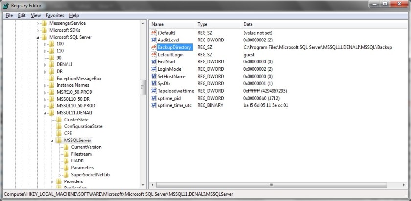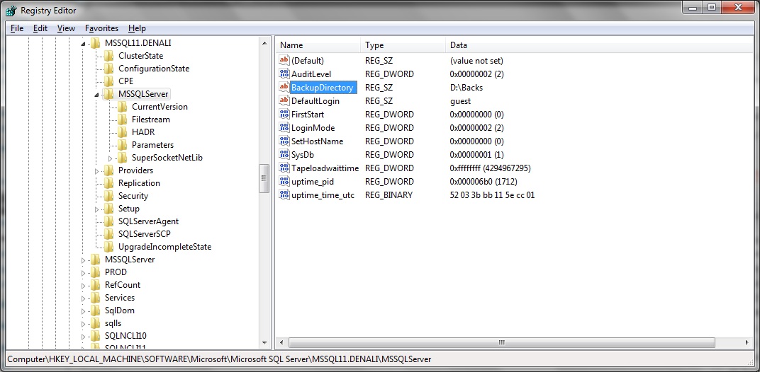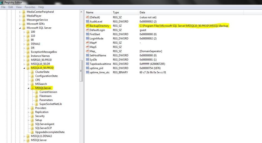 HKEY_LOCAL_MACHINE\SOFTWARE\Microsoft\Microsoft SQL Server\MSSQL10_50.PROD\MSSQLServer