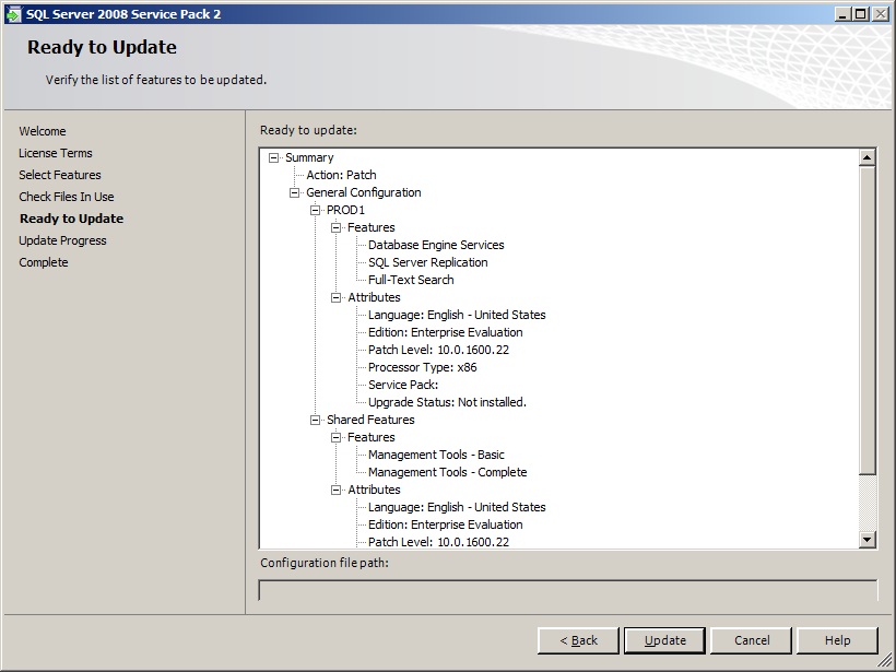 As you see in the above screenshot we’ve upgraded our SQL from “Microsoft SQL Server 2008 (RTM) – 10.0.1600.22 (Intel X86) Jul 9 2008 14:43:34″ to “Microsoft SQL Server 2008 (SP2) – 10.0.4000.0 (Intel X86) Sep 16 2010 20:09:22″.
